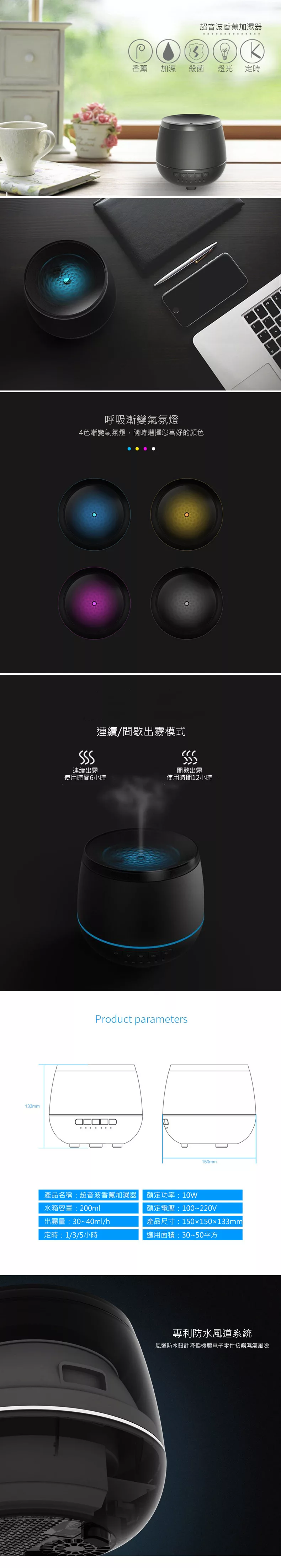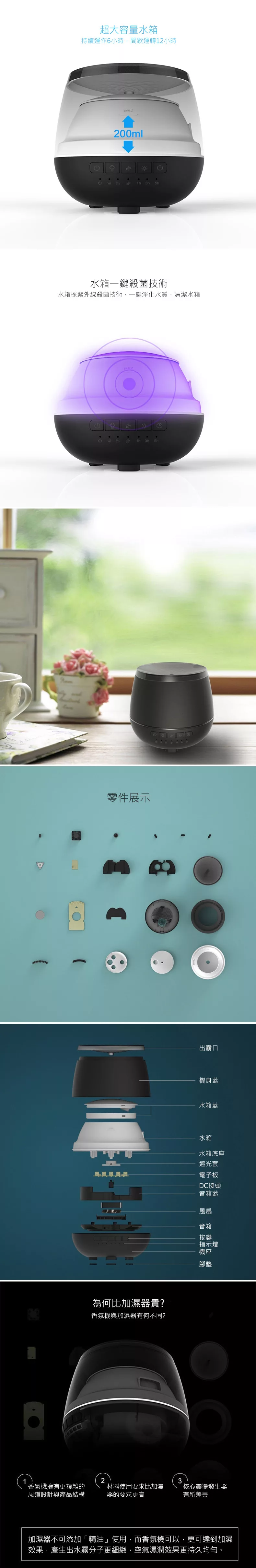 ●200ml水箱可添加各類"精油',採用抗酸抗鹼材質