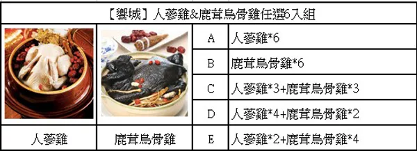 【饗城】人蔘雞或鹿茸烏骨雞任選6入組(內含整隻雞)A 現金回饋